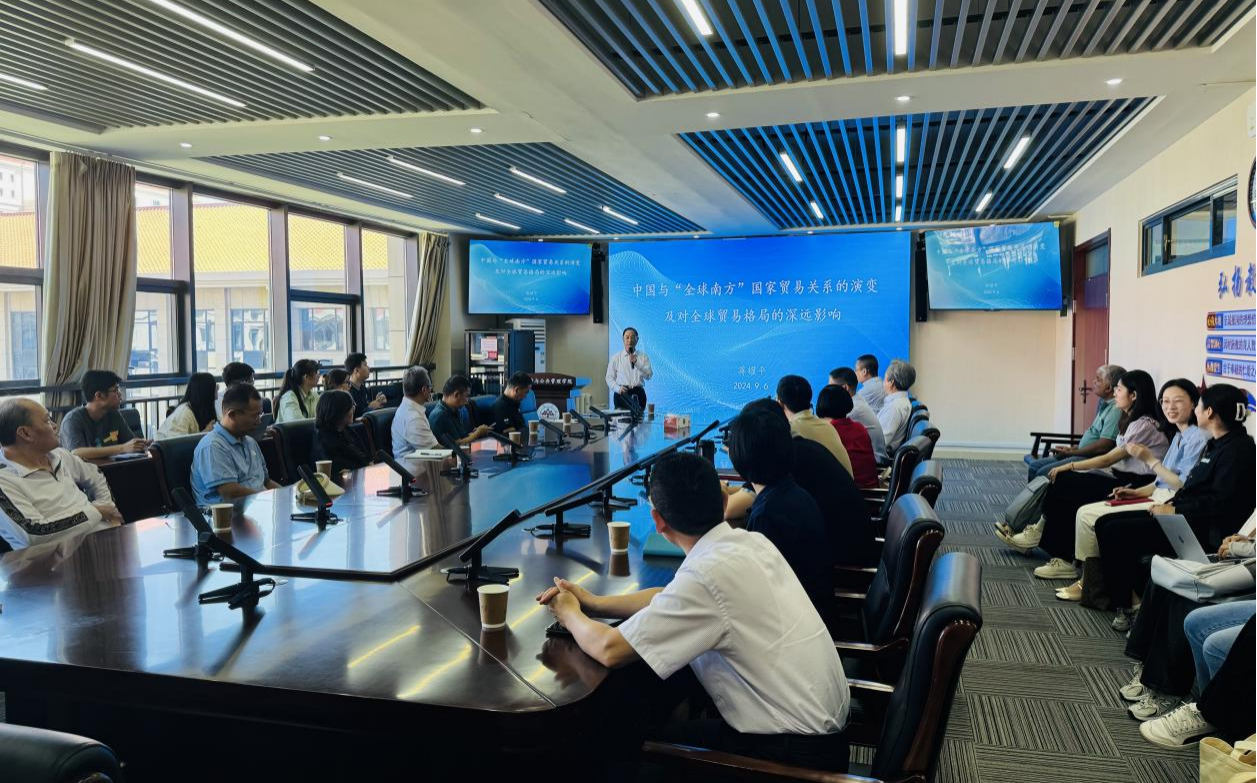 讲座伊始,蒋耀平教授指出,当今时代以金砖国家为代表的新兴市场国家和发展中国家群体性崛起,正在从根本上改变世界版图。其中,中国与全球南方国家的贸易快速增长,引发了全球贸易格局深刻变革。我国新兴市场贸易规模扩大,东盟、非洲、拉美、中东多元共进、蓬勃发展,促进全球贸易繁荣;新兴市场贸易结构优化推动全球贸易结构升级,中国制造业向高端化智能化转型。同时,新兴市场贸易模式创新正重塑全球贸易格局,促进全球经济繁荣与发展。在此基础上,蒋耀平教授从政策协调沟通、优化贸易结构、推动贸易数字化和绿色化发展、参与多边贸易体制规则制定、注重人才培养与智库建设、加强文化交流与民心相通六方面提出发展建议。