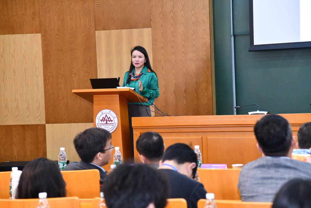 公共管理系主任楼苏萍副教授主持论坛主旨演讲环节。清华大学政治学系长聘教授、数据治理研究中心主任张小劲发表了以《城市治理研究中的类型学与特例和常例》为题的演讲。他基于城市评测中的分类与类型提出研究问题,根据雄安会议议程分析了城市分类学与类型学的研究框架,并提出“国家治理的支点在城市,城市治理的重点在社会,治理现代化的节点在数据”。