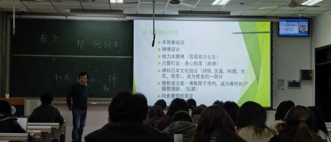 邓红教授首先从日本的政治历史出发,通过讲述大化改新、明治维新和战后的状况,归纳出日本现代化道路特色,并对日本的地方行政单位做简要介绍。邓红教授结合时政热点,详细讲述了当今日本的政治体系及其运作。接着,邓红教授讲解了日本从绳文时代到帝国时代的历史演进。邓红教授生动形象地讲解了汉字作为日本构筑自身文化工具的重要性,亲身演绎了常见日本词语的读法。最后,邓红教授简要介绍了日本现代高等教育体系。