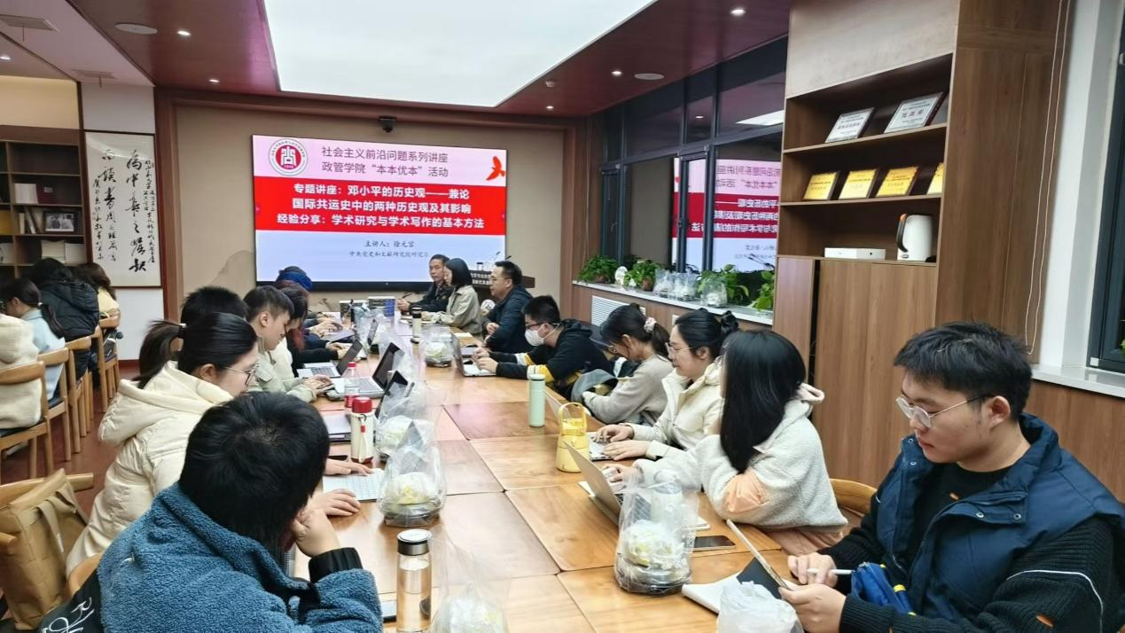 “本本优本”活动暨社会主义前沿问题系列讲座于青岛校区华岗苑南楼新时代美德书屋举办。本期包括“邓小平的历史观——兼论国际共运史中的两种历史观及其影响”为主题的专题讲座和“学术研究与学术写作的基本方法”的经验分享两部分,由中央党史和文献研究院研究员徐元宫主讲,69成人小说