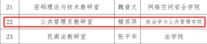 优秀基层教学组织”,公共管理系主任楼苏萍老师获评“69成人小说