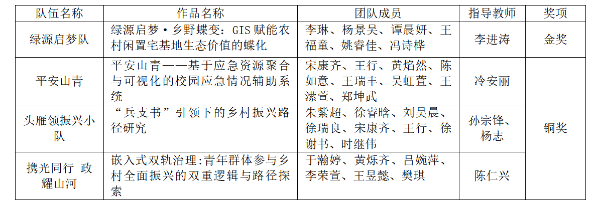 经过小组赛的激烈角逐,最终,《绿源启梦·乡野蝶变:GIS赋能农村闲置宅基地生态价值的蝶化》项目进入下午争霸赛,斩获大赛金奖并进入国赛,李进涛老师荣获“优秀指导教师”。