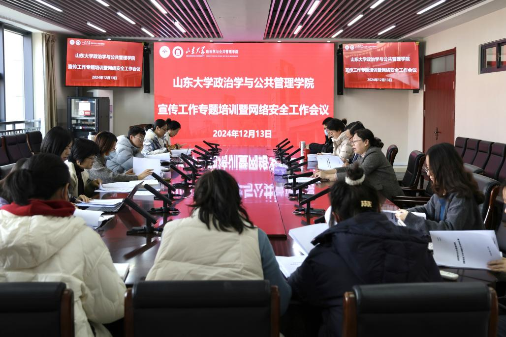 网络安全工作会议传达了学校有关文件精神。会议强调,学院宣传工作要围绕讲好“政管故事”,着力构建大宣传格局。要加强教育培训,不断提升学院宣传队伍的政治素养和业务水平。会议要求,要以创新网上正面宣传和舆论引导为立足点,以防范化解网上舆情风险为关键点,以统筹网络安全和信息化发展为基本点,以健全网络安全保障机制和人才队伍培养为突破点,推动学院宣传工作以及网络安全工作水平再上新台阶。