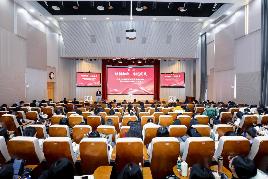 在学生代表发言环节,2021级行政管理专业本科生谢铠蔚、2022级政治学理论专业硕士研究生王泽雨、2024级 MPA研究生辛悦、2023级MPA研究生孟玥、2021级MPA研究生张晓涵以及 2022级MPA研究生刘明磊等六位同学依次发言,他们从各自的角度分享了在学业追求、团队协作、个人成长等方面的感悟与思考,展现出山大政管学子立志成才、报效国家的责任担当的深刻理解。