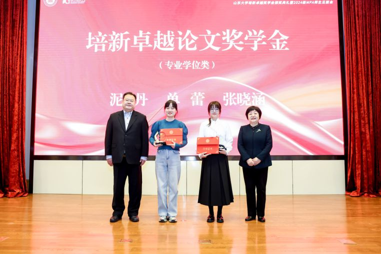 在颁奖环节,学术学位类培新卓越学生奖学金、专业学位类培新卓越新生奖学金、专业学位类培新卓越学生干部奖学金、专业学位类培新卓越论文奖学金以及专业学位类培新卓越集体奖学金等五类奖项的获奖同学依次上台领取荣誉。