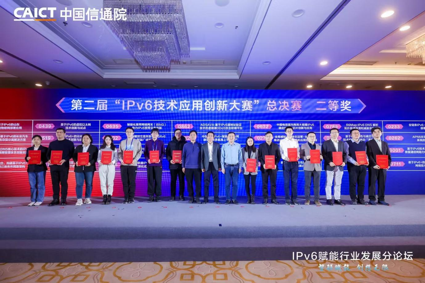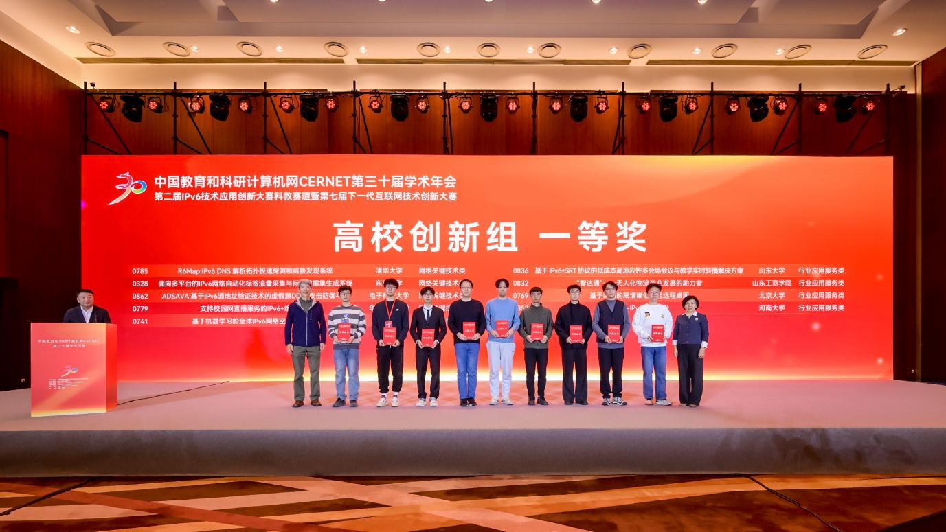 据悉,IPv6技术应用创新大赛由中国信息通信研究院、中国互联网络信息中心、中国通信标准化协会主办,旨在挖掘IPv6/IPv6+的技术潜能与优势,促进IPv6创新技术与各行各业的融合发展,进一步加速网络强国和数字中国的建设步伐。本次大赛征集了来自全国各地的1100多个项目,涵盖了通信、电力、科教、油气、政务、金融等多个行业,历经行业专题赛、区域赛、大区赛的层层遴选及总决赛的激烈角逐,最终评选出一等奖16个、二等奖28个、三等奖45个。其中,由在工业和信息化部、中共中央网络安全和信息化委员会办公室、教育部的指导下,中国教育和科研计算机网CERNET网络中心、赛尔网络有限公司举办的大赛科教赛道还同时作为第七届下一代互联网技术创新大赛,旨在激发高校学生在下一代互联网领域的创新创业能力,积极开展IPv6技术创新与应用实践,培养下一代互联网创新人才,产生特等奖2名、一等奖12名、二等奖22名、三等奖25名。