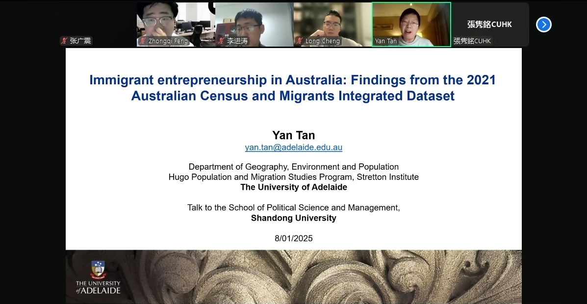 生活质量与公共政策研究中心主办的“敏政·厚生”系列专家讲坛第七期于线上举办。本次讲座主题为“Immigrant entrepreneurship in Australia: Findings from the 2021 Australian Census and Migrants Integrated Dataset”,由阿德莱德大学地理、环境与人口系副教授、斯特雷顿研究所雨果人口与移民项目负责人谭燕主讲,69成人小说