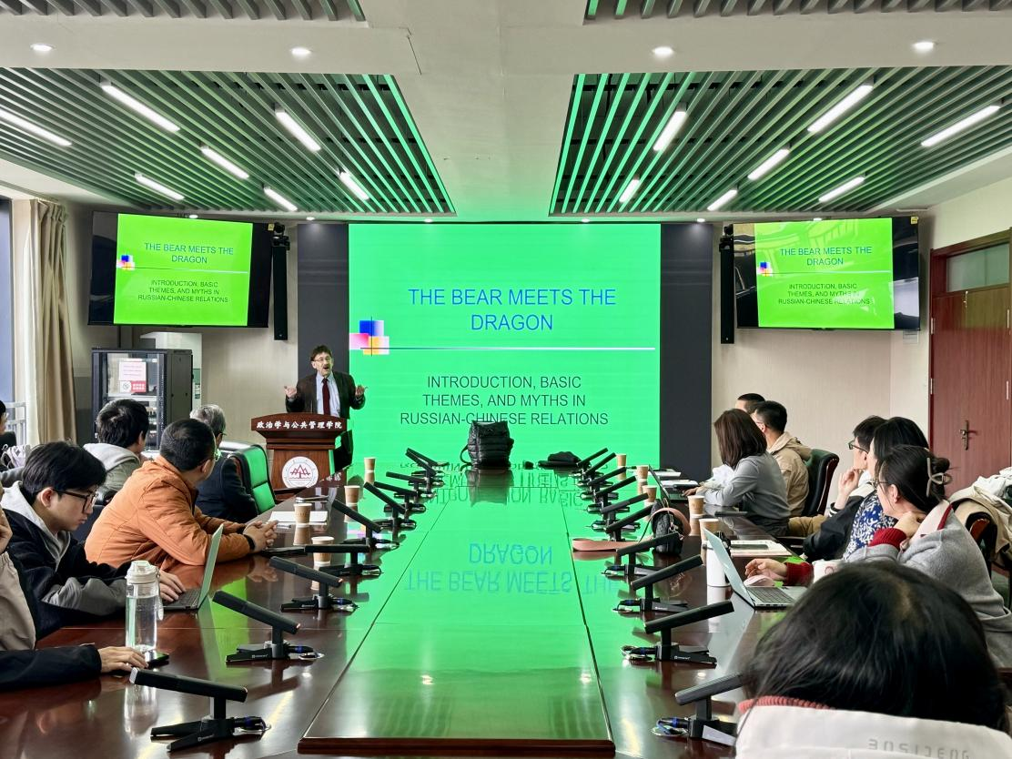 讲座伊始,Share教授指出,中俄关系存在漫长而复杂的历史脉络,通过阐述边界关切、安全需求、贸易往来、身份认同等揭示了中俄关系的基本主题。此外,中俄关系历经演变,通过回顾中俄关系在不同历史时期的具体历程,Share教授细数了中俄关系从对抗到合作再到战略伙伴的演变过程。这些历史事件不仅反映了中俄关系的复杂性,也揭示了影响两国关系的经济、文化等因素。最后,Share教授总结了中俄关系的现状,指出尽管存在过分歧和误解,但通过沟通和协商,中俄双方已经建立起互信和合作的基础,在全球挑战增多的背景下,两国应加强合作,在未来继续保持稳定和发展。
