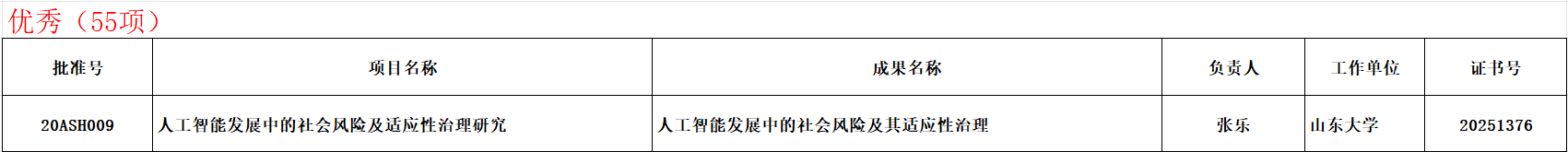 张乐教授主持的国家社科基金重点项目“人工智能发展中的社会风险及适应性治理研究”(项目批准号:20ASH009),在相关研究领域取得了一系列重要成果,获评“优秀”结项,为人工智能的健康发展与风险治理提供了关键理论支撑和实践指导。