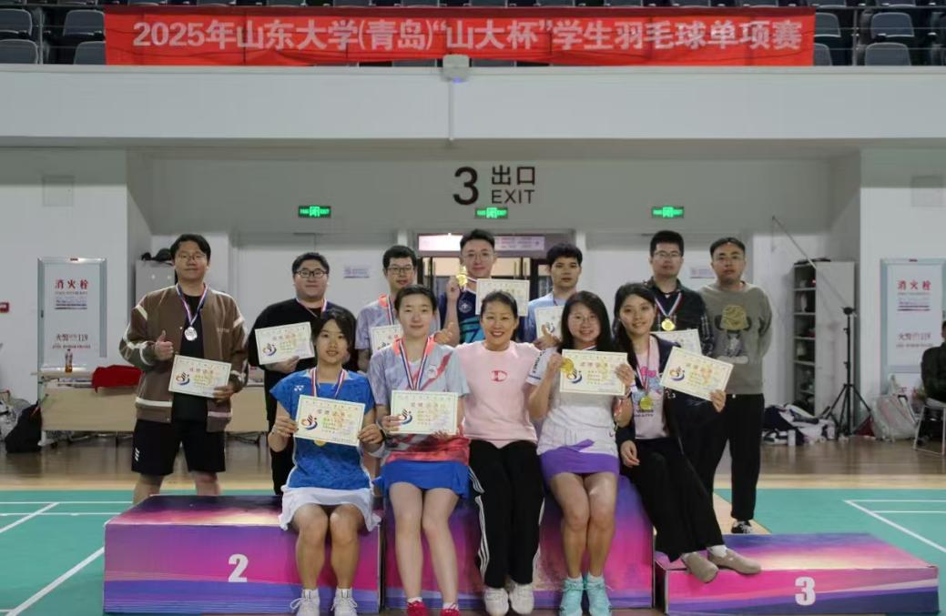 (青岛)“山大杯”学生羽毛球单项赛中,政管学子凭借扎实的球技和出色的表现斩获4项冠军。其中闫云光获得男子双打冠军、赖昶获得混合双打冠军、傅文玥获得女子单打冠军、梅若寒获得女子双打冠军。