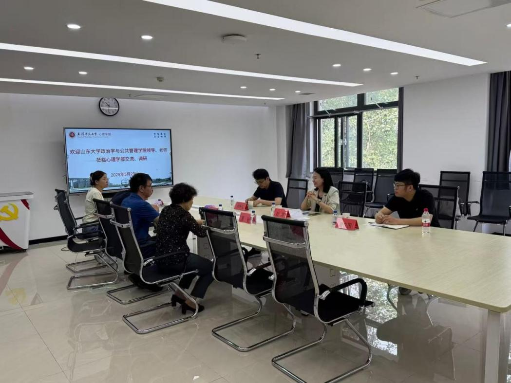 副院长赵婷、公共管理系主任、智慧国家治理实验室副主任费立国、神经与行为公共管理实验室主任刘华兴一行,到访天津师范大学心理学部,并参观教育部人文社科重点研究基地——天津师范大学心理与行为研究中心、天津市学生心理健康与智能评估重点实验室。双方围绕实验室建设、人才培养、多学科交叉融合等展开深入交流。