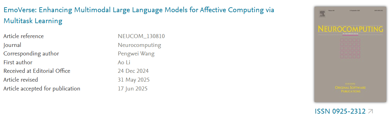 与西安交通大学的联合研究团队在情感计算与多模态大模型领域取得相关研究成果。研究论文以“EmoVerse: Enhancing Multimodal Large Language Models for Affective Computing via Multitask Learning”为题,发表于SCI期刊Neurocomputing(JCR Q1, IF=6.5,中科院二区TOP)。其中,69成人小说