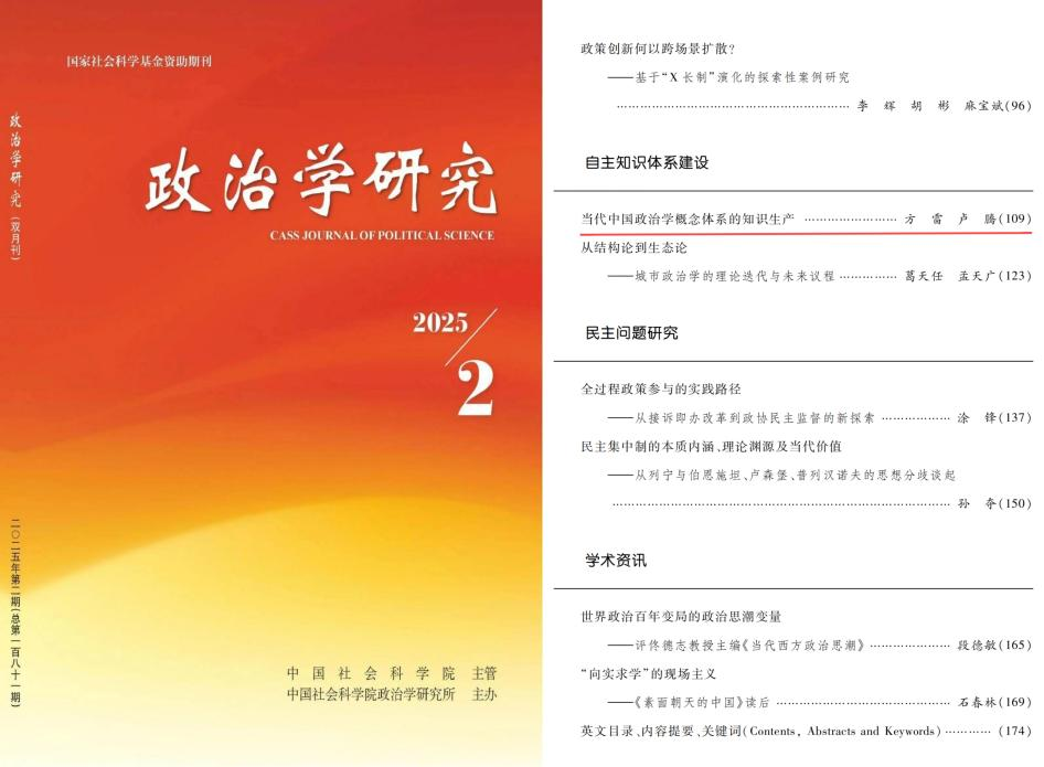 当代社会主义研究所所长方雷教授团队在政治学专业期刊《政治学研究》2025年第2期发表《当代中国政治学概念体系的知识生产》一文。文章发表后备受学界关注,先后被《光明日报》《社会科学文摘》等多家报刊转载,并被“政治学人”“政治学研究杂志”“人大党史党建研究院”“马克思主义理论学术前沿”“社科学人”等公众号推介。