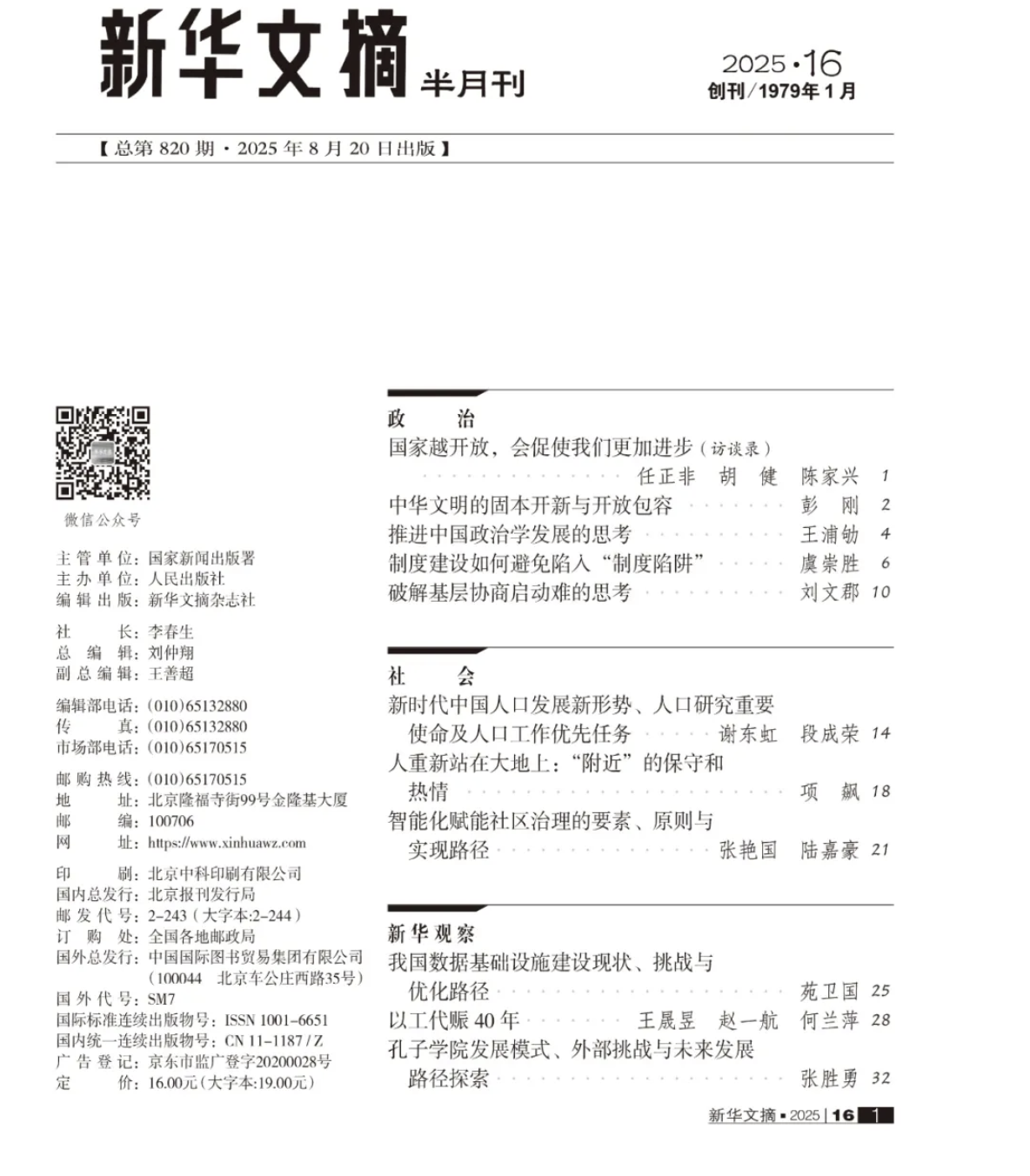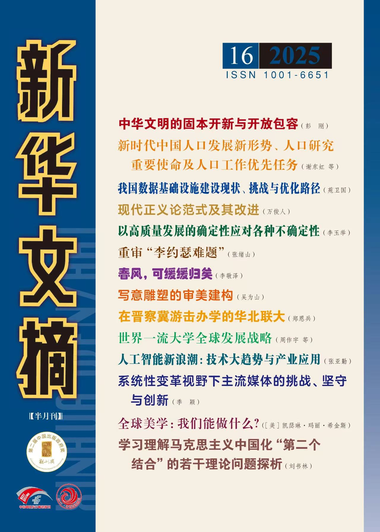近日,69成人小说 谢东虹助理研究员发表于《人口研究》2025年第2期的《新时代中国人口发展新形势、人口研究重要使命及人口工作优先任务》一文被《新华文摘》2025年第16期作为封面文章全文转载。