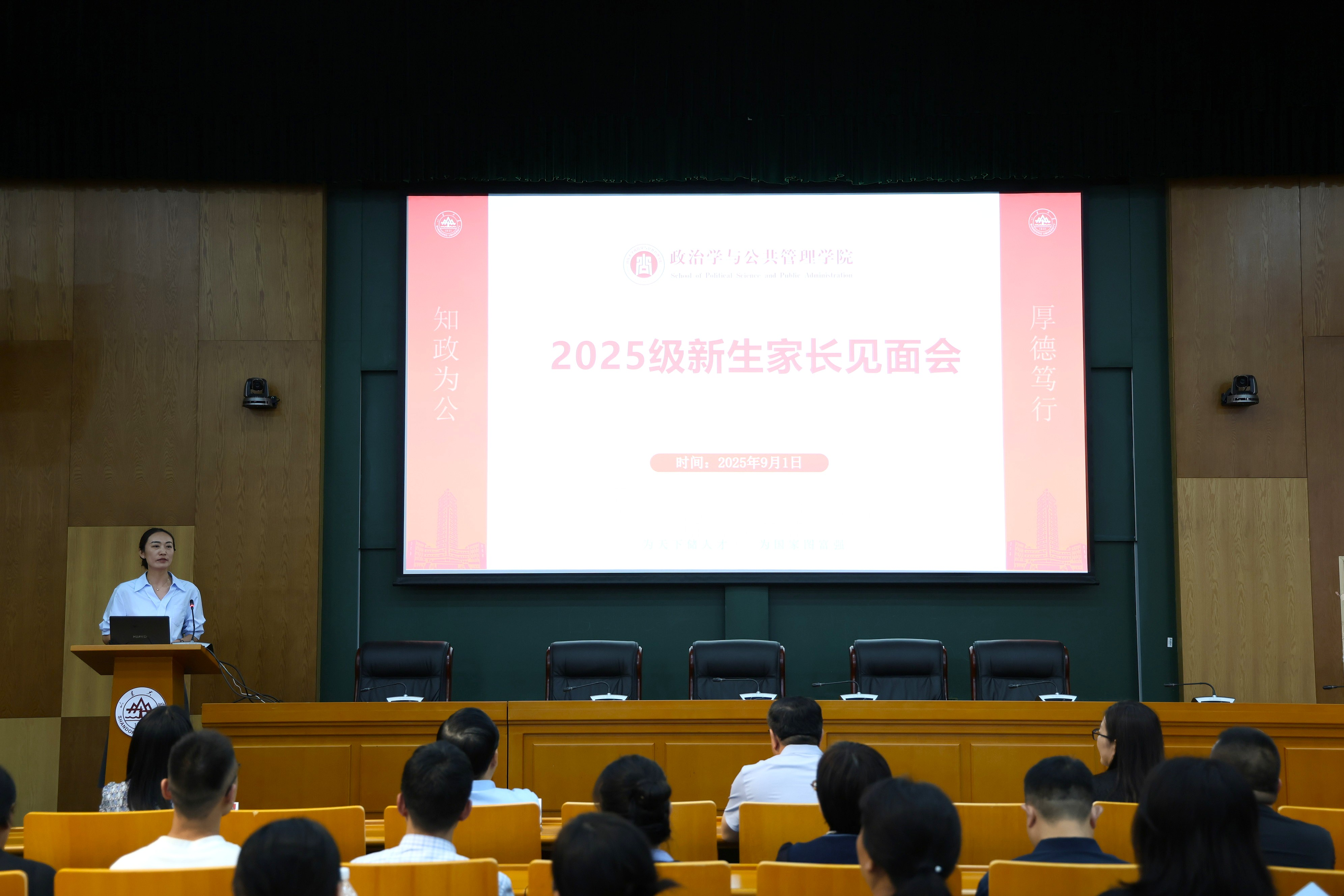 的发展历史,展望了学院乘势而上的广阔前景。他诚挚呼吁家校携手,同守安全底线、共筑成长高线,让每一位学子学在山大,快乐成长。马桂兰以“家校合作,同心同行”为题,从“读懂自己、读懂孩子、有效沟通、携手共育”四个维度,为家长们提供了一份温情而实用的“成长指南”。赵婷介绍了学院本科专业的历史底蕴、学科优势、师资阵容与就业前景,并详解了特色班的选拔机制,希望新生们在政管沃土中学有所得、学有所成。
