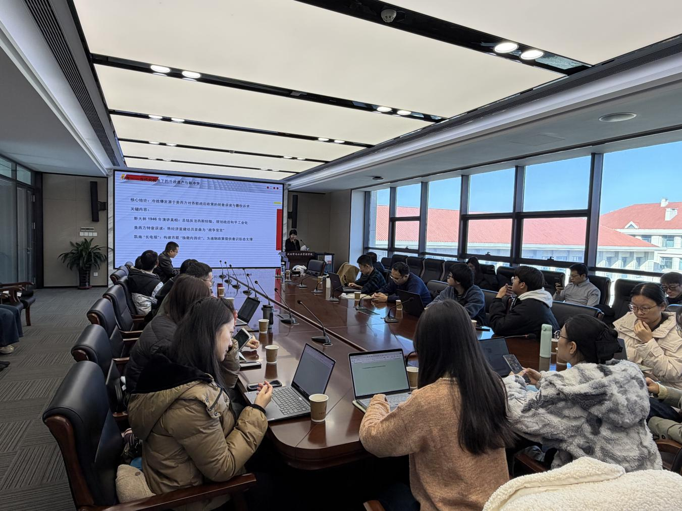 在主旨报告中,吕新雨教授以“冷战叙事的生成机制与当代延续”为切入点,对李普曼批判以及冷战早期美国战略选择进行了系统回溯。她指出,冷战的真正起点并非源于苏联扩张,而在于美西方对苏联战后工业化规划的持续误读及其背后的霸权诉求;凯南的“独裁内因论”建构了美国对苏联的制度化敌意框架,而李普曼的“去威尔逊主义批判”则揭示了美国外交中力量滥用的深层危机。凯南—李普曼之间跨越七十余年的思想论辩,在21世纪依然具有高度解释力,其“扩张 VS自保”的内在张力正被美国右翼保守主义重新激活,并在当代新冷战叙事、北约扩展逻辑和对俄政策中呈现现实映射。她强调,理解这一叙事结构对于把握美国在国际事务中的战略行为、话语塑造与秩序构建具有关键意义。