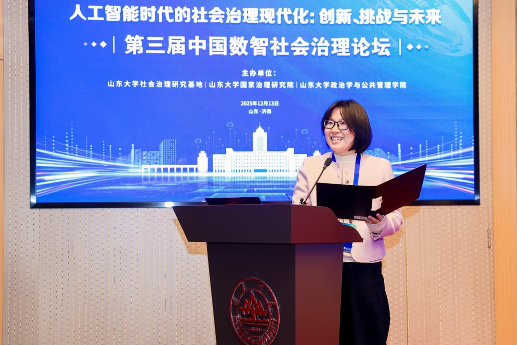 国家治理研究院院长助理楼苏萍宣读中国数智社会治理案例库(2025)入选名单。