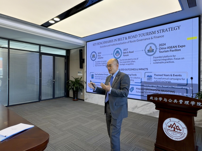 公共安全研究院、中国—上海合作组织经贸学院联合主办的“合作与发展”系列讲座第三十九期在青岛校区举办。本期讲座特邀香港理工大学讲座教授、陈泽富伉俪国际旅游教授、酒店及旅游业管理学院副院长宋海岩担任主讲嘉宾,主题为“一带一路与旅游一体化——重塑全球互联互通”。69成人小说