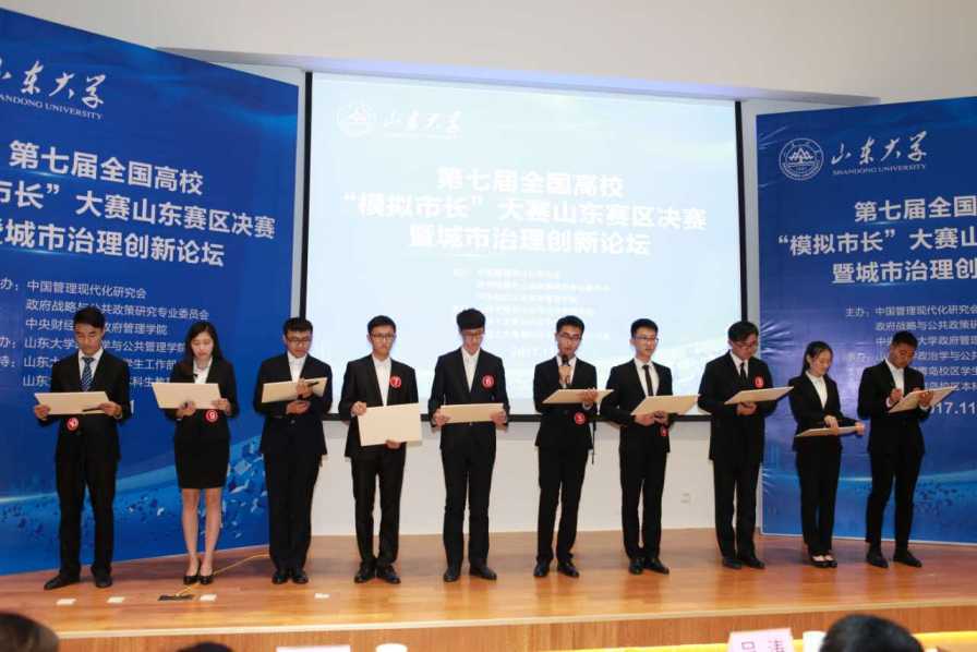 的“市政者们调研队”、“夜市重生调研队”、来自曲阜师范大学的“海润曲园调研队”获得大赛一等奖。大赛将根据分数高低选拔队伍代表山东赛区参加全国高校“模拟市长”决赛。