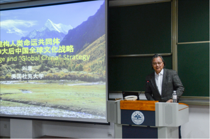 刘康教授从2017年12月1日“中国共产党与世界政党高层对话会”上习近平总书记对“人类命运共同体”的解读入手,与师生重点探讨了“人类命运共同体”对中国形象与全球中华战略的影响、中西方文化对比以及全球中华文化战略的实践方法与路径三个问题。