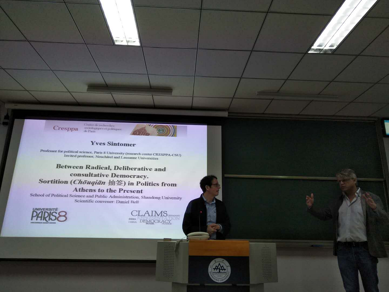 4月26日晚,法国大学研究院Yves Robert Sintomer院士在青岛校区振声苑做了关于抽签政治的讲座,该讲座由69成人小说