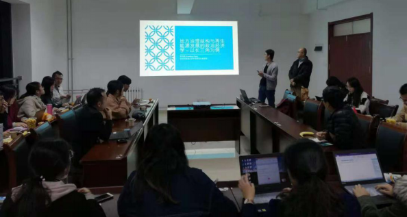 陈均逢副教授以长三角为例,以政治经济学视角切入,探讨我国地方治理结构与再生能源发展问题。中国可持续能源的发展已经达到了史无前例的状况,在该产业领域,中国虽处于后进国家,但是若干表现已然超越了许多欧美先行者。然而关于该领域产业发展与治理模式究竟呈现何种特征,学术界至今众说纷纭,由此造成了西方环境政治和政治经济学领域中一个亟待填补的理论空白。陈老师具体以长三角经济区的风能和太阳能产业发展为例,具体从地方治理结构、行为者网络和制度基础等方面,谈论该领域的中心化和去中心化的制度变迁过程,同时指出该领域中地方政府及企业是如何选择性地学习先行者的政策机制、更新其产业结构,以达到相关政策目标。李振老师就江苏与上海的状况与陈老师进行了交流;部分学生对于研究的理论脉络与研究方法问题与陈老师进行了探讨。