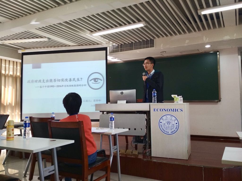 校长奖学金单项(研究创新)获奖者梁梓峰来自2015级行政管理专业,其在学术创新领域成果显著。以第一作者撰写的《Improvement of Eco-efficiency in China——A Comparison of mandatory and hybrid environmental policy instruments》文章被JCR 2区SSCI期刊录用刊发;撰写的《政府财政支出能否切实改善民生?——基于中国1993—2016年省级面板数据的分析》和《城市封闭式小区开放困境与出路的探讨——以济南市部分小区为例》分别被厦门大学“首届中国计量经济学者论坛” 和华东理工大学“公共服务与城市治理”国际学术研讨会录用,并作为唯一的本科生在研讨会上宣读论文。除此之外,梁梓峰还主持校级科创基金项目一项,参与本科生指导教师的课题研究,于院刊《青年政治》发表文章一篇,于今年九月成功取得了清华大学公共管理学院直博生录取资格。