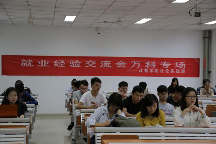 在就业经验交流会万科专场中,来自万科集团的4位特邀嘉宾就不同方面的就业问题与同学们进行交流。两位总经理秘书详细介绍了万科集团的发展定位、业务范围以及校招生的具体规则,并结合自己的实习经历提出了与实习有关的观点与建议。另外两位嘉宾则介绍了找工作的实用技巧,笔试前的准备工作、试卷解答技巧,以及有关面试的注意事项,并鼓励同学们要积累实力,不停奋斗,相信自己,就可以在就业的道路上顺利前进。万科专场的就业经验交流会中,通过有工作经历的嘉宾的介绍,同学们对求职和职场有了更加深入的认识。