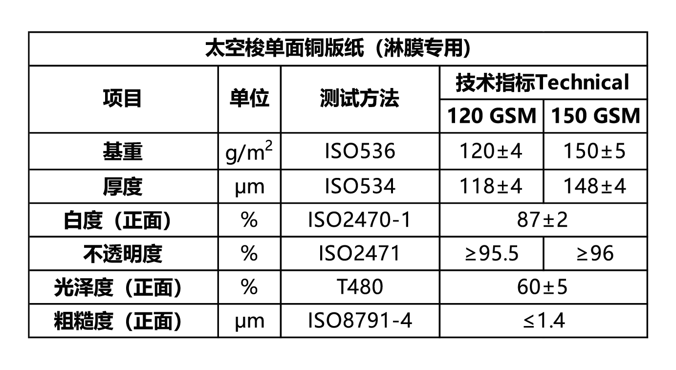太空梭单面铜版纸淋膜专用